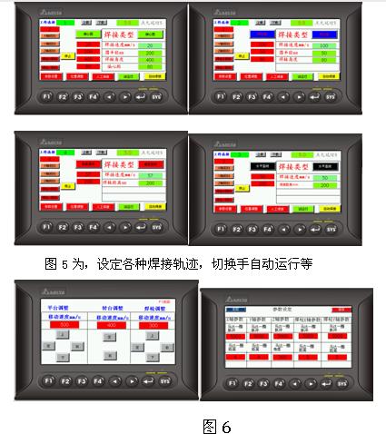 圖6為手動控制,及參數(shù)設(shè)置,在剛開始運行時,手動調(diào)整平臺位置及焊槍位置到合適的地方再開始自動運行。