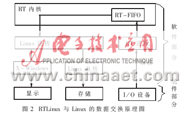??? 為保證實時進程與非實時Linux進程間順利進行數(shù)據(jù)交換,RTLinux引入了RT-FIFO隊列。RT-FIFO被Linux視為字符設備,最多可達150個,分別命名為/dev/rtf0、/dev/rtf1……/dev/rtf63。最大的RT-FIFO數(shù)量在系統(tǒng)內核編譯時設定。圖2說明了RT-FIFO的工作原理。?