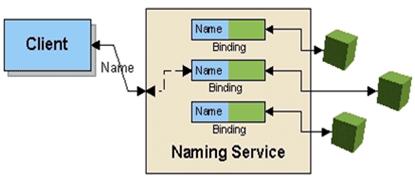 ??? 可以看到,對于一個Client來說,一個Naming Service 提供了對于一個對象(Object)到名字(Name)的綁定和查詢(Binding and Lookup),以提供對于資源的訪問,就是說,對于一個程序,訪問這個Name就等于訪問了其綁定的Object?