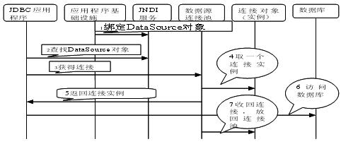 ??? 在DATASOURCE中事先建立了多個數(shù)據(jù)庫連接,這些數(shù)據(jù)庫保存到連接池(CONNECT POOL)中,JAVA程序訪問數(shù)據(jù)庫時,只需要從連接池中取出空閑狀態(tài)的數(shù)據(jù)庫連接,當(dāng)程序訪問數(shù)據(jù)庫結(jié)束,再將數(shù)據(jù)庫連接放回到連接池,這樣可以提高訪問數(shù)據(jù)庫的效率,如果WEB 應(yīng)用每一次都接收到用戶的客戶請求,都和數(shù)據(jù)庫建立一個連接,數(shù)據(jù)庫操作結(jié)束就斷開連接,這樣會耗費大量的時間和資源,因為數(shù)據(jù)庫每一次配置鏈接都要將CONNECTION對象加載到內(nèi)存中,再驗證用戶名和密碼。?