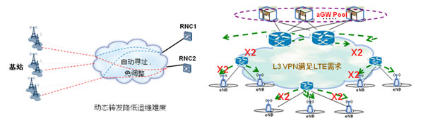 2、IP RAN的動(dòng)態(tài)能力解決了IP基站擴(kuò)容帶來的運(yùn)維難題和滿足LTE扁平化需求