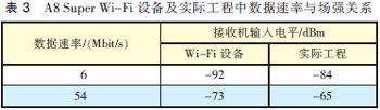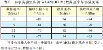 泰爾實驗室實測WLAN(OFDM)數(shù)據(jù)速率與場強關(guān)系見表2。