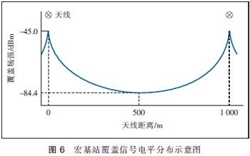 圖7示出的是文獻[3]給出的建設(shè)模式。圖7中1+6個近遠(yuǎn)端覆蓋范圍等于1個宏基站覆蓋范圍。覆蓋區(qū)內(nèi)采取小功率、多天線的模式進行覆蓋。天線掛高不宜過高(8m左右);室外天線口功率為15~30dBm;市區(qū)天線覆蓋半徑在150 m以內(nèi)。