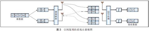 系統(tǒng)將數(shù)據(jù)分割成多份,分別在發(fā)射端的多個天線上發(fā)射出去,接收端接收到多個數(shù)據(jù)的混合信號后,利用不同空間信道間獨立的衰落特性,區(qū)分出這些并行的數(shù)據(jù)流。從而達到在相同的頻率資源內(nèi)獲取更高數(shù)據(jù)速率的目的??臻g復(fù)用與發(fā)射分集技術(shù)不同,它在不同天線上發(fā)射不同信息。
