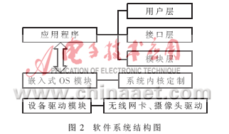 系統(tǒng)硬件配置完成后,就需要定制平臺和編寫代碼實現(xiàn)各個功能模塊,最終實現(xiàn)整個系統(tǒng)。系統(tǒng)的軟件結(jié)構如圖2所示。