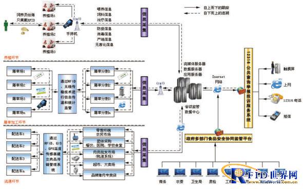 遠(yuǎn)望谷生豬肉品質(zhì)量信息溯源系統(tǒng)是面對(duì)管理轄區(qū)內(nèi)的生豬養(yǎng)殖場(chǎng)、定點(diǎn)屠宰場(chǎng)、冷鏈運(yùn)輸環(huán)節(jié)、肉品批發(fā)市場(chǎng)、農(nóng)貿(mào)市場(chǎng)的肉品攤位、大型超市和大賣場(chǎng)、餐飲企業(yè)和定點(diǎn)單位的生豬及肉制品的質(zhì)量安全可追溯系統(tǒng)。它利用綁定在生豬以及豬肉上的RFID電子標(biāo)簽和供應(yīng)鏈上各業(yè)務(wù)用戶不同IC身份卡信息相關(guān)聯(lián),并通過(guò)無(wú)線傳輸技術(shù)實(shí)時(shí)上傳供應(yīng)鏈上豬肉的流向變化至中心數(shù)據(jù)庫(kù),不僅各業(yè)務(wù)用戶按權(quán)限登錄平臺(tái)系統(tǒng)可以隨時(shí)獲取自身在政府?dāng)?shù)據(jù)中心存儲(chǔ)的每日業(yè)務(wù)數(shù)據(jù),而且政府各業(yè)務(wù)部門也可按自己管轄權(quán)限對(duì)供應(yīng)鏈上各環(huán)節(jié)實(shí)現(xiàn)在線實(shí)施監(jiān)管,為保證豬肉食品安全提供了良好的技術(shù)支撐手段。