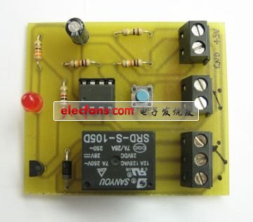 這個項目介紹如何構(gòu)建一個“軟接觸”開關(guān)。“柔軟觸感”我們的意思是,你要推一次設(shè)置設(shè)備,推動再設(shè)置關(guān)閉設(shè)備。這種交換機的工作原理,通過按下一個按鈕,并與另一推閂鎖狀態(tài)鎖存繼電器釋放。它正在像觸發(fā)器狀態(tài)。這樣你可以控制電源設(shè)備使用一個按鈕。該電路是圍繞555定時器配置的方式,讓鎖存一個國家和一個行動是需要改變狀態(tài)。從+5 V供電電路,并有連接器連接控制設(shè)備。我們增加了一個輸出繼電器,LED指示燈以及電源連接器,外部按鈕和繼電器觸點。