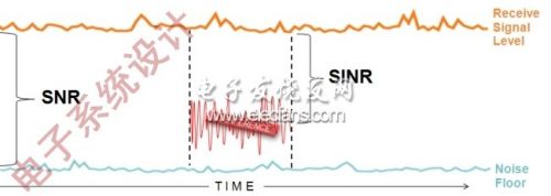 一種預(yù)測(cè)Wi-Fi系統(tǒng)性能的技術(shù)指標(biāo)就是信噪比(SNR)。SNR是接收信號(hào)水平與背景噪聲強(qiáng)度的差值(圖2)。通常,信噪比越高,則誤碼率越低且吞吐量越高。但是,一旦干擾發(fā)生,還會(huì)有一些其它的問(wèn)題令網(wǎng)管人員擔(dān)心,即信號(hào)與干擾加噪聲比,也稱作SINR。SINR是信號(hào)水平與干擾水平的差值。由于反映了射頻干擾對(duì)用戶吞吐量的負(fù)面影響,因此SINR是一個(gè)更好的用于反映Wi-Fi系統(tǒng)能夠達(dá)到何種性能的指標(biāo)。SINR值越高,數(shù)據(jù)傳輸率就越高,頻譜容量就越大。