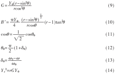 式中,r為駐波比,δ0為半帶寬,ω2、ω0分別為頻率上限和中心頻率,Ye為匹配傳輸線的特征導(dǎo)納,Y0為0.02s。?