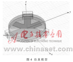 ??? 選用電磁仿真軟件HFSS進行仿真,結(jié)合上述計算出來的數(shù)值,構(gòu)建仿真模型,如圖4所示。?