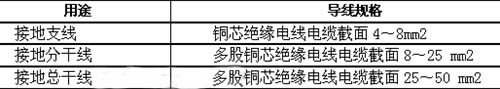 DCS系統(tǒng)的保護(hù)地和屏蔽地連線應(yīng)使用銅芯絕緣電線或電纜連接到廠區(qū)電氣專用接地網(wǎng)或接地體上。小表列出各類(lèi)接地電纜可選用的規(guī)格。當(dāng)接地連線距離較長(zhǎng)、DCS系統(tǒng)對(duì)接地電阻要求較高或接地干線分接的支線數(shù)量較多時(shí),宜選用表中截面較大的電線電纜。