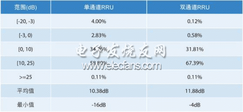 從測試結(jié)果可以看出,雙通道RRU相對(duì)于單通道RRU在PCCPCH_RSCP和PCCPCH_C/I均有明顯的提升,特別是對(duì)覆蓋邊緣電平有了明顯的提升。