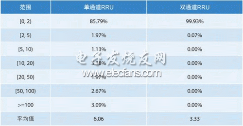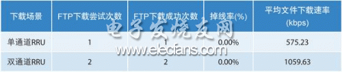 測試結(jié)果表明,雙通道RRU的HSDPA在定點(diǎn)偏弱場吞吐量(-90dbm)相對(duì)于單通道RRU場景速率提升近一倍。