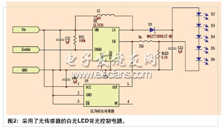 這些要求如何在一個(gè)實(shí)際的應(yīng)用中實(shí)現(xiàn)呢?讓我們看一看環(huán)境光傳感器是如何在一個(gè)自動(dòng)的白光LED背光控制電路中工作的,在汽車(chē)背光應(yīng)用中通??梢钥吹竭@種控制電路。