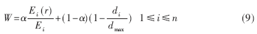 其中:Ei(r)為第i個(gè)簇頭的當(dāng)前剩余能量,Ei為第i個(gè)簇頭的初始能量;di為該非簇頭節(jié)點(diǎn)到第i個(gè)簇頭的距離;dmax為網(wǎng)絡(luò)中任意兩個(gè)節(jié)點(diǎn)間的最遠(yuǎn)距離;α為加權(quán)系數(shù),可以根據(jù)實(shí)際需要?jiǎng)討B(tài)調(diào)節(jié)能量和距離所占的比重。