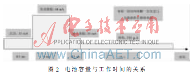 在倉儲管理中,存在節(jié)點數(shù)多、分布較為分散的特點,不宜頻繁更換電源。ZigBee低功耗的特點就顯得十分重要。在低耗電待機模式下,2節(jié)5號電池可支持1個節(jié)點工作6~24個月,甚至更長,這是ZigBee的突出優(yōu)勢。單個節(jié)點的模塊功耗低于100 mW,而且單芯片可實現(xiàn)大部分功能,致遠(yuǎn)電子推出的ZICM2410 ZigBee模塊,每隔10 s發(fā)送一次定位數(shù)據(jù),使用550 mAh(放電量約為500 mAh)的電池可以工作13個月。ZICM2410模塊電池容量與工作時間計算表如表1所示,電池容量與工作時間的關(guān)系如圖2所示。