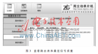 相比于標(biāo)準(zhǔn)ZigBee協(xié)議棧,ZLGnet具有路由查找速度快、路由策略穩(wěn)健等特點,使用自帶的配置軟件即可實現(xiàn)路由表的獲取,并可以知道哪個節(jié)點的信號強度最弱,這在布設(shè)基站的時候,非常有用。如圖3所示。