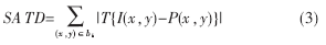 關(guān)于幀內(nèi)預(yù)測(cè)模式?jīng)Q策算法的快速實(shí)現(xiàn),本文提出的方法的核心思想是利用反映圖像空間特性的原始圖像和預(yù)測(cè)圖像在變換域中的絕對(duì)差值之和(SATD)與JMODE值之間的相關(guān)性,減少需要RDC計(jì)算的候選模式的數(shù)量。SATD定義如下: