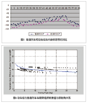 通過(guò)對(duì)廣深鐵路上動(dòng)車(chē)組CRH1車(chē)廂以及普通列車(chē)穿透損耗的測(cè)試,我們得到了穿透損耗的測(cè)試結(jié)果。測(cè)量揭示了動(dòng)車(chē)組穿透損耗與電波入射列車(chē)的角度相關(guān),隨著射線(xiàn)與火車(chē)的掠射角的減小穿透損耗增大而增大的規(guī)律。動(dòng)車(chē)組列車(chē)的穿透損耗因其良好的密封特性,比普通列車(chē)的穿透損耗大約15dB。