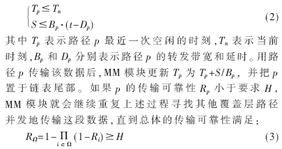 其中Ω表示所用覆蓋層路徑的集合。若無法找到Ω滿足上述條件,MM模塊將再使用網(wǎng)絡層路徑冗余傳輸這段多媒體數(shù)據(jù)。