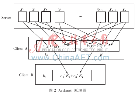 網(wǎng)絡(luò)編碼也可以用到分布式存儲上。Acedanski[5]等人研究了一個網(wǎng)絡(luò)分布式系統(tǒng)中在受限的存儲資源上存儲一個或多個大文件的問題。每個存儲位置選擇一個文件的一部分,而不關(guān)心這個文件存放在哪里,希望文件下載器能夠盡可能少地鏈接存儲器而取得整個文件。對比無編碼存儲和基于傳統(tǒng)糾刪編碼的存儲和基于隨機(jī)線性編碼的存儲三種策略,其仿真結(jié)果表明基于隨機(jī)線性碼的分布式存儲策略在無需全局文件服務(wù)器參與時,其性能接近集中式全局調(diào)度算法。而傳統(tǒng)的基于糾刪編碼則需要中心服務(wù)器占據(jù)大量的附加存儲空間才能完成參數(shù)的恰當(dāng)選擇。