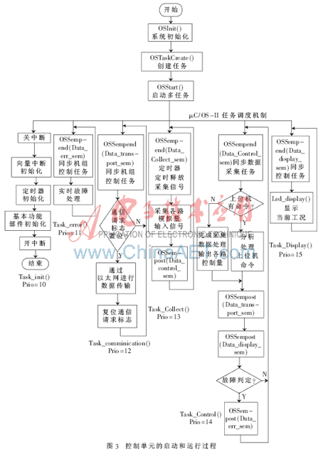 (3)故障處理任務(wù)Task_error()為次優(yōu)先級任務(wù),優(yōu)先級Prio=11。當(dāng)獲得Data_err_sem信號后判斷機(jī)組故障的類型,按照預(yù)先的設(shè)定進(jìn)行實(shí)時(shí)故障處理,并給出報(bào)警、提示故障原因。