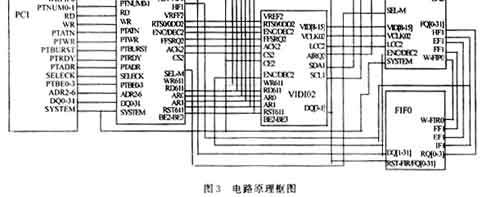 VIDIO1和VIDIO2模塊包括ADV611和SAA7111的接口,這部分主要實(shí)現(xiàn)A/D  轉(zhuǎn)換,并將轉(zhuǎn)換后ADV611支持的數(shù)字視頻信號(hào)經(jīng)ADV611壓縮后再經(jīng)S5933存儲(chǔ)在主機(jī)里。