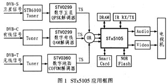 目前國(guó)際上為機(jī)頂盒提供主器件平臺(tái)的廠家,有ST、BROADCOM、ZORAN、LSI、FUJITSU、ATI、NEC、Conexant等公司,其中ST公司作為世界最大的工業(yè)半導(dǎo)體和機(jī)頂盒器件供應(yīng)商之一,在研發(fā)實(shí)力、產(chǎn)品種類(lèi)、供貨實(shí)力等方面有顯著優(yōu)勢(shì)。所以目前市場(chǎng)上機(jī)頂盒多選用ST公司的器件,尤其是中低端機(jī)頂盒主要選擇ST公司的兩款器件STx5105或QAMi5516。