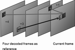 除幀內(nèi)宏塊編碼類型外,H.264/AVC還包含多種針對P片宏塊的預測性或活動補償性的編碼類型。宏塊被分割在用于活動描述的大小固定的塊中,每個P類宏塊對應(yīng)一個特定的宏塊分區(qū)。活動補償?shù)木葹橐粋€樣本距離的四分之一。