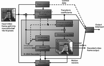 MPEG-4 第十部分H.264/AVC在本質(zhì)上與MPEG-2等其他標準類似,是由時間預測和空間預測的綜合體與編碼轉(zhuǎn)換共同組成的,但這一新標準并不會取代現(xiàn)有的MPEG-4 第二部分“編碼解碼器”,也不與其兼容。