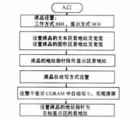 經(jīng)過(guò)前面的處理,生成的點(diǎn)陣文件fig n.inc中點(diǎn)陣存放順序跟我們習(xí)慣的方向已經(jīng)一致。因此,只要在初始化液晶后,按順序從點(diǎn)陣文件中讀取點(diǎn)陣值,再寫(xiě)往液晶相應(yīng)的顯示區(qū),就能完成整幅靜態(tài)圖像的顯示。圖3是以常見(jiàn)的用T6963C作控制器的液晶顯示模塊為例來(lái)說(shuō)明圖像顯示的靜態(tài)流程。