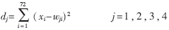 ??? c. 計(jì)算輸入Xm與所有輸出節(jié)點(diǎn)連接權(quán)值Wj的距離: