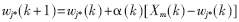 ??? e. 調(diào)整輸出節(jié)點(diǎn)j*與輸入節(jié)點(diǎn)的連接權(quán)值和學(xué)習(xí)系數(shù)α: