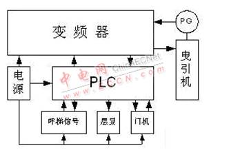 由圖3可知,該系統(tǒng)主要由以下幾部分組成:PLC、變頻器、曳引機(jī)、門機(jī)等。PLC是控制系統(tǒng)的核心。[2]PLC根據(jù)輸入的呼梯信號(hào)和目前電梯所處的位置自動(dòng)確定電梯的運(yùn)行方向及速度,變頻器根據(jù)PLC的速度指令控制曳引電動(dòng)機(jī)的轉(zhuǎn)速,到達(dá)目的層后,自動(dòng)平層、停車、開關(guān)門,在運(yùn)行過程中輸出電梯的樓層位置和運(yùn)行方向,同時(shí)完成對(duì)呼梯信號(hào)的登記、保存和消除等工作。對(duì)電梯運(yùn)行中的一些特殊情況(如急停、超載、沖頂、蹲底等)自動(dòng)進(jìn)行處理和報(bào)警。