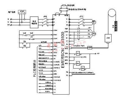 變頻器選用艾默生CT的EV3100電梯專用變頻器。除了矢量控制、轉(zhuǎn)差補(bǔ)償和負(fù)載轉(zhuǎn)矩自適應(yīng)等功能,還具有抱閘控制及檢測(cè)、電梯超速檢測(cè)等電梯專用功能。為實(shí)現(xiàn)閉環(huán)矢量控制、提高系統(tǒng)的動(dòng)態(tài)性能和實(shí)現(xiàn)零速抱閘控制,在曳引電動(dòng)機(jī)軸端加裝旋轉(zhuǎn)編碼器。該編碼器信號(hào)不僅作為曳引電動(dòng)機(jī)的速度反饋,利用EV3100變頻器的分頻功能,還可實(shí)現(xiàn)對(duì)電梯的數(shù)字位移控制。系統(tǒng)硬件電路如圖4所示。[4]