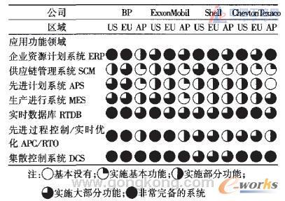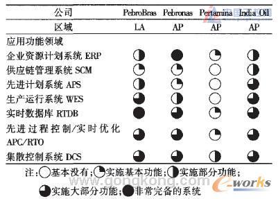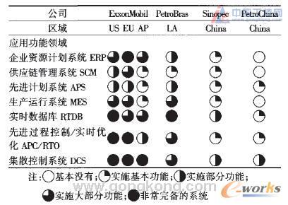 表4 國際排名前10位石化企業(yè)、中國石化及沙特阿美ERP實(shí)施情況