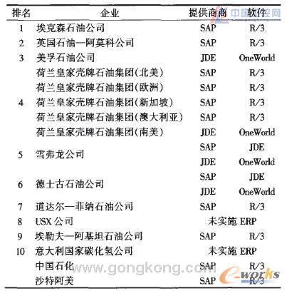 表4為國際排位前10位石化企業(yè)、中國石化及沙特阿美ERP實(shí)施情況。