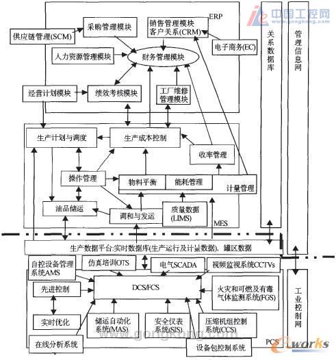 生產(chǎn)運(yùn)行管理層在企業(yè)的整個(gè)信息系統(tǒng)中起著承上啟下的作用,是企業(yè)生產(chǎn)運(yùn)行操作信息和生產(chǎn)經(jīng)營管理信息傳送的紐帶。生產(chǎn)運(yùn)行管理層的核心是生產(chǎn)制造執(zhí)行系統(tǒng)(MES)。MES包括:生產(chǎn)成本控制、生產(chǎn)計(jì)劃與調(diào)度、操作管理、油品儲(chǔ)運(yùn)、油品調(diào)和與發(fā)運(yùn)、物料平衡、能耗管理、計(jì)量管理、收率管理及實(shí)驗(yàn)室數(shù)據(jù)管理系統(tǒng)(LIMS)等等。其核心是生產(chǎn)成本控制。目前可以提供石化行業(yè)MES整體解決方案的公司有AspenTech、Honeywell、RIS等。MES將生產(chǎn)自動(dòng)化與經(jīng)營活動(dòng)結(jié)合起來,將經(jīng)營目標(biāo)轉(zhuǎn)化為生產(chǎn)操作目標(biāo),實(shí)現(xiàn)經(jīng)營和生產(chǎn)自動(dòng)化間的協(xié)調(diào)統(tǒng)一,真正使經(jīng)營計(jì)劃周期形成“閉合回路”。