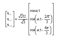 (1)式中, 為電源電壓有效值, 為電源電壓的角頻率。因?yàn)閁、V、W三相在空間上互差 ,所以,采用電壓空間矢量的概念后,可表示如下: