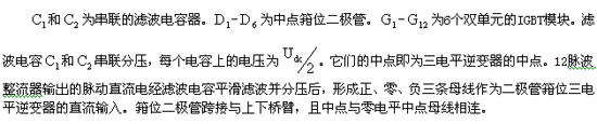 中壓大功率傳動(dòng)系統(tǒng)已在工業(yè)生產(chǎn)中得到了廣泛應(yīng)用,例如石化行業(yè)中的管道泵、水泥行業(yè)中的風(fēng)機(jī)、水泵站的供水泵、運(yùn)輸行業(yè)中的牽引機(jī)械以及冶金行業(yè)中的軋機(jī)等。與低壓傳動(dòng)相比,中壓傳動(dòng)在很多方面都有更高的技術(shù)要求和挑戰(zhàn)。在低壓傳動(dòng)中,一些無足輕重甚至根本不存在的問題,在中壓傳動(dòng)中卻是必須解決的問題,這些技術(shù)難點(diǎn)大體包括:與網(wǎng)側(cè)整流器電能質(zhì)量相關(guān)的技術(shù)要求、與電動(dòng)機(jī)側(cè)逆變器設(shè)計(jì)相關(guān)的技術(shù)難點(diǎn)、開關(guān)器件的限制和傳動(dòng)系統(tǒng)的整體要求等。傳統(tǒng)的兩電平逆變器在大功率應(yīng)用時(shí)存在許多問題:需要笨重、耗能、昂貴的變壓器;為了得到高質(zhì)量的輸出波形而提高開關(guān)頻率,造成很高的開關(guān)損耗,而為了適應(yīng)高電壓的要求,需采用器件串聯(lián),因而需要復(fù)雜的動(dòng)態(tài)均壓電路。為此,德國學(xué)者Holtz于1977年提出了三電平逆變器的電路拓?fù)?,其中每相橋臂帶一?duì)開關(guān)管,以輔助中點(diǎn)箱位。后來,1980年日本學(xué)者Nabae在此基礎(chǔ)上繼續(xù)發(fā)展,將這些輔助開關(guān)變?yōu)橐粚?duì)二極管,分別與上下橋臂串聯(lián)的主管中點(diǎn)相連,以輔助中點(diǎn)箱位。該電路比前者更易于控制,且主管關(guān)斷時(shí)僅承受直流母線一半的電壓,因此更為實(shí)用。