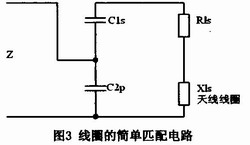 作為電磁能量的發(fā)射裝置一耦合線圈,必須考慮其匹配問題。耦合線圈在無線識(shí)別系統(tǒng)的工作頻率范圍內(nèi)表現(xiàn)為阻抗ZL,為了實(shí)現(xiàn)與系統(tǒng)的功率匹配,必須通過無源的匹配電路實(shí)現(xiàn)阻抗轉(zhuǎn)換,使功率無反射地傳輸?shù)今詈暇€圈??梢岳蒙倭拷M件來實(shí)現(xiàn)相配的匹配電路。在現(xiàn)實(shí)應(yīng)用中有多種不同的13.56MHz的無線識(shí)別系統(tǒng)采用了如圖3的匹配電路。