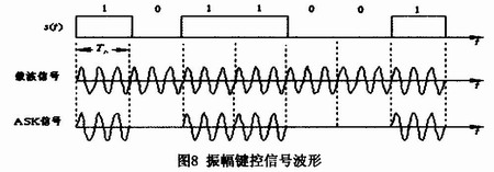 調(diào)制器由高速CMOS器件74HC00構(gòu)成,實(shí)現(xiàn)ASK調(diào)制。調(diào)制波形如圖8所示。調(diào)制輸出信號(hào)經(jīng)反向后直接送諧振回路。