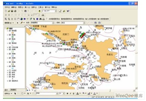 圖2 ArcMap制作中的舟山海域界面圖