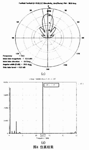 從仿真結(jié)果中可以很明顯看出,中心頻率處駐波比達(dá)到了非常理想的效果,在駐波比為2以下的帶寬大約為400MHz,其結(jié)果符合設(shè)計(jì)要求;其H面方向圖(即天線架裝后的水平方向圖)波束寬度達(dá)到了寬角度探測(cè)的要求;E面方向圖也達(dá)到了指標(biāo)要求,不足之處在于其副瓣電平還不是非常理想,這主要是由于為了滿足波束寬度的需要而采用縫隙數(shù)較少的緣故,但其損失在可接受的范圍內(nèi)??傮w來說,各項(xiàng)指標(biāo)達(dá)到了設(shè)計(jì)之初的目標(biāo)。
