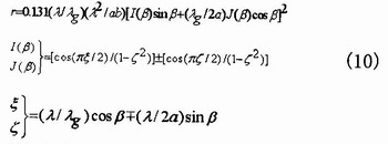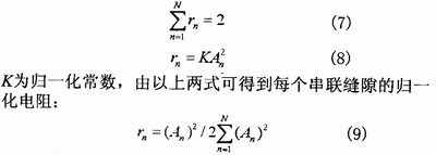 A.F.Stevenson利用洛倫茲互易定理及波導(dǎo)中功率的平衡方程,得到了串聯(lián)縫隙的歸一化等效電阻表示式為:
