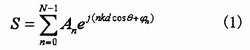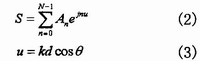 其中An為激勵(lì)的幅度,θ為觀察方向與直線的夾角,d為陣元間距。由于諧振陣各單元是同相的,即φn=O,則上式可簡(jiǎn)化為: