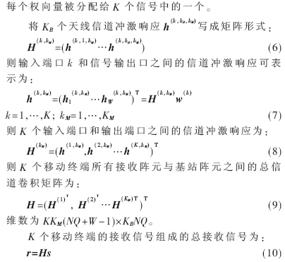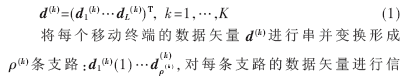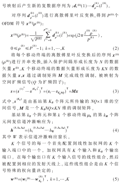 假定一個(gè)基站服務(wù)K個(gè)移動(dòng)終端,每個(gè)移動(dòng)終端采用KM元天線陣列,基站采用KB元天線陣列,基站為每個(gè)移動(dòng)終端發(fā)送L個(gè)數(shù)據(jù)符號(hào):