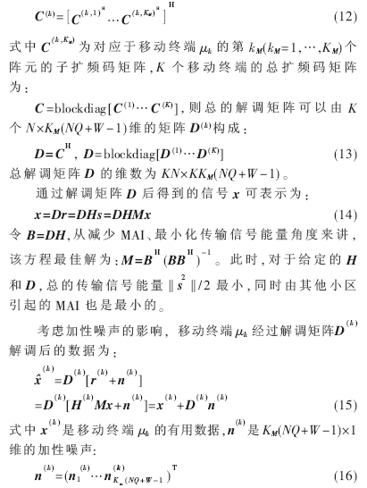 采用智能天線(SA) [1-3]波束形成技術(shù)可以增加TD-SCDMA系統(tǒng)小區(qū)的覆蓋范圍,改善鏈路質(zhì)量。但是在智能天線主波束覆蓋范圍內(nèi)往往有多個(gè)用戶存在,并導(dǎo)致多址干擾(MAI)和多用戶干擾。由BAIER P W等人提出的聯(lián)合發(fā)送技術(shù)(JT)[1-3]能有效降低MAI和多徑干擾,提高系統(tǒng)容量,降低移動(dòng)終端的數(shù)據(jù)檢測(cè)復(fù)雜度,使移動(dòng)終端的微型化、低功耗成為可能。