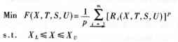 其中,X的定義同前,T=[T1,T2,...]為幅度界限值矩陣,S=[S1,S2,...]為加權系數矩陣,U=[U1,U2,...]為裕度矩陣,XL、XU分別為設計參數的上下界限矩陣。p為偶次方,m為采樣點總數,Ri稱為余差,具體表達式為:
