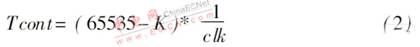 其中: K 為定時(shí)器2溢出后重載的計(jì)數(shù)數(shù)值; clk 為系統(tǒng)時(shí)鐘頻率。